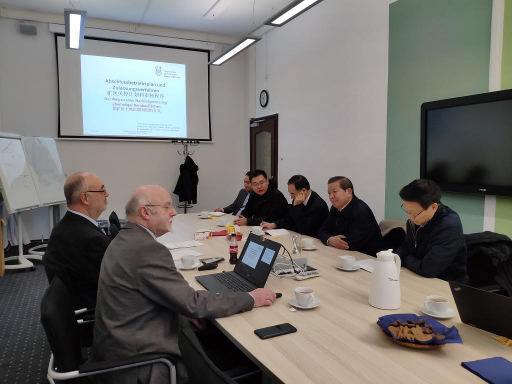 调研德国波鸿工业大学期间,与原北威州煤炭局局长Michael Kirchner教授、Frank Otto教授等进行了座谈交流。Michael教授介绍了德国矿区关停计划和审核程序、老矿区土地后期利用情况。Frank教授介绍了矿区生态修复领域最新研究进展,并分析了关停矿井管理模式、矿井资源再利用的政企关系等问题。