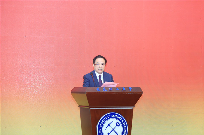 原校长、离退休教职工代表张文祥教授致辞。他回顾了学校的办学历程和取得的成就,指出学校秉承校训传统,落实校园精神,坚持科学发展,励精图治,脚踏实地,为煤炭行业进步和国家地方经济建设输送了大量领军人才,为煤炭高等教育贡献了力量。他对学校的发展成就感到由衷高兴,对学校正以创建“双一流”的胆识和气魄,脚踏实地的精神和姿态,向着既定目标奋勇前进,倍感欣慰。祝愿学校越办越好,为国家和地方经济社会发展做出更大贡献!