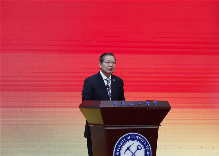 桂来保校友讲话。他强调,煤炭开采全面进入智能化时代是大势所趋,推动中国煤炭安全智能精准开采和清洁高效利用,既是贯彻落实习近平总书记重要指示批示精神的重要举措和必由之路,更是我们行业高校必须的政治担当和职责使命。进入新时代,母校各项事业蒸蒸日上,办学水平和综合实力显著提升,为煤炭行业高质量安全发展和煤炭高等教育事业作出了积极贡献。希望母校以纪念建校75周年为契机,贯彻“四为”方针,坚持“四个面向”,坚决担负起新时代赋予的历史重任,认真谋划“十四五”和2035中长期发展,紧紧抓住新一轮科技革命和产业变革的历史性机遇,向科技创新的深度和广度进军,用更多的科技创新成果推动煤炭行业安全、高质量、可持续发展,在加快推进“双一流”创建中培养担当民族复兴大任的时代新人,在贯彻落实习近平总书记“四个革命、一个合作”能源安全新战略中发挥更大的作用!他表示,国家煤矿安全监察局将一如既往地关心支持学校改革发展和“双一流”创建,为实现学校的新腾飞贡献力量!