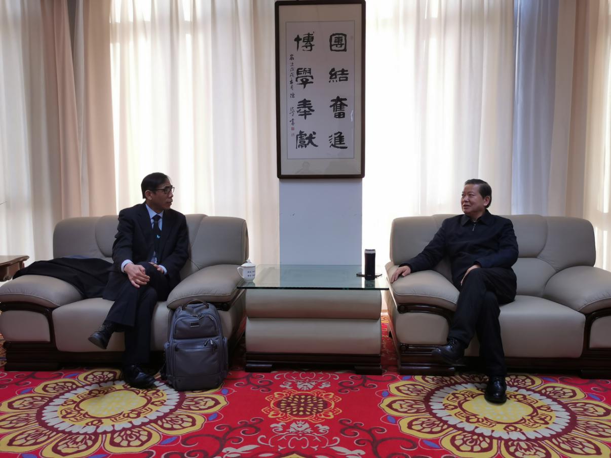 1月7日下午,英国皇家化学会会士、爱尔兰科学基金会首席科学家王文新教授来校交流,校党委副书记、校长袁亮院士在舜耕楼1115贵宾室会见了王文新教授并进行座谈交流。