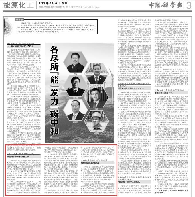 日前,全国人大代表、中国工程院院士袁亮就煤炭业碳中和接受《中国科学报》采访。